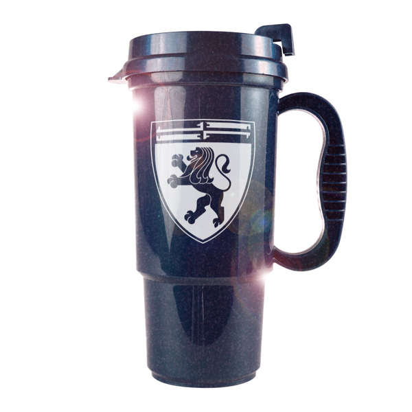 DescriptionOur 16 oz. Insulated Auto Mug has a four-finger comfort handle. Thumb Slide Lid helps prevent spills. Ships Assembled. BPA Free FDA Compliant - Safe for Food Contact.