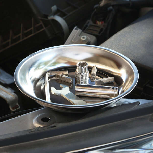 DescriptionSay goodbye to lost screws and small parts with the PartSaver Stainless Magnetic Bowl. Designed to keep your tools and components secure, this bowl is perfect for mechanics, DIY enthusiasts, and anyone working with small parts that need to stay in place. The bowl holds all types of metal parts and the rubber coated magnetic base prevents scratches on finished surfaces.