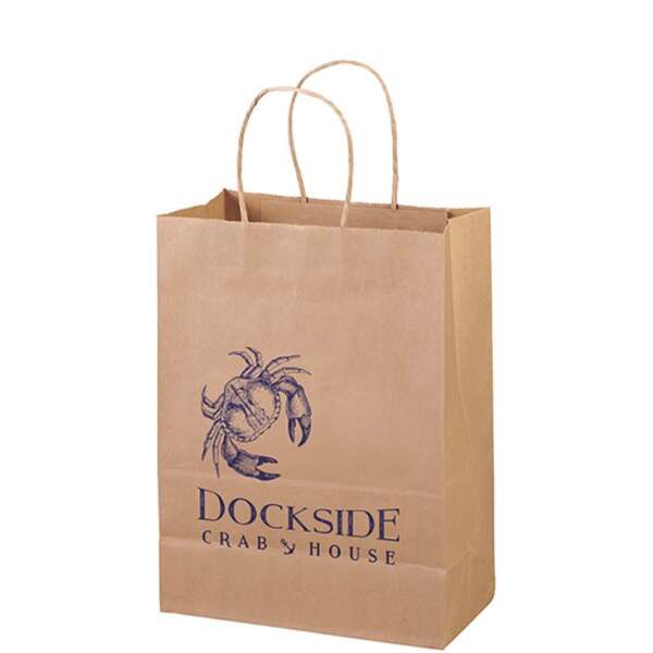 DescriptionThe Eco Jenny is made from brown kraft paper and has twisted paper handles and a serrated top. The eco-friendly bag is made from 100% recycled paper with a minimum of 60% recycled post-consumer content. Ink imprint.