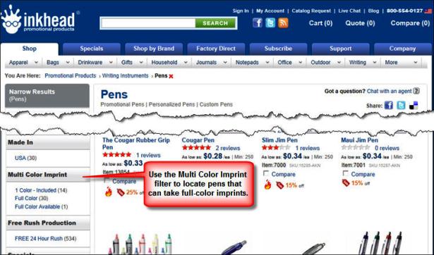 “Deluxe” carries several Full-Color Imprint Pens. Use the Multi-Color Imprint filter to filter products that can have a multi or full color imprint.